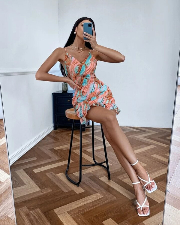 زیبایی رنگا و مدلش اصلا تو عکس مشخص نیست خیلی ناز وگوگوله برند : shein سایز : 36/38 عرض سینه : 46 قد: 73 از پشت زیپ میخوره از بغل گتداره