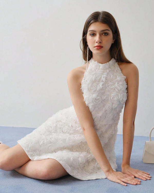 پیراهن گل برجسته مجلسی بکلس پشت پیراهن بازه و با عکس ژورنالیش متفاوته قسمت دامنش از پشت زیپ میخوره مناسب فرمالیته، تولد، عکاسی، نامزدی، خواستگاریه
