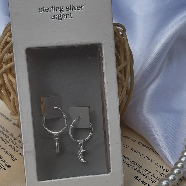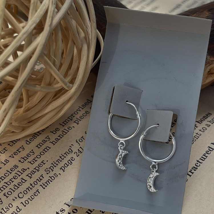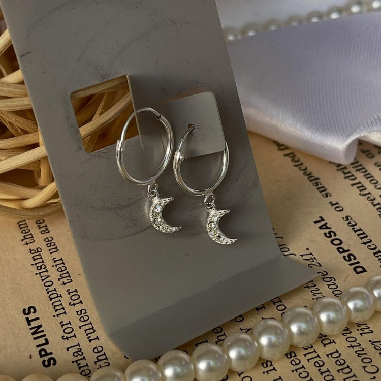 گوشواره حلقه ای با آویز ماه نقره