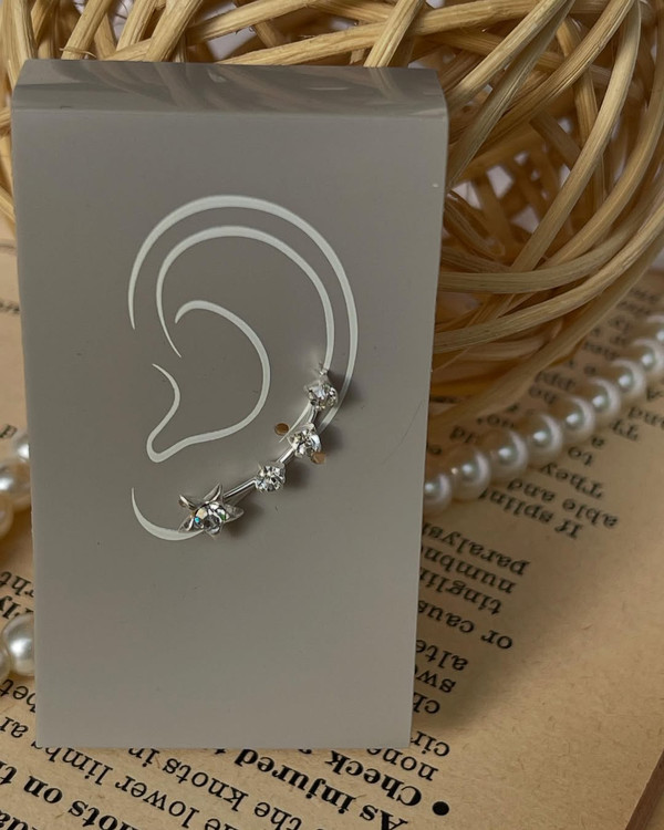 پیرسینگ نقره نقره عیار 925 پیرسینگی که واست نقش ۴ تا گوشواره رو ایفا میکنه با یه سوراخ گوش انگار ۴ تا گوشواره پوشیدی پشتش یه میله کشیده داره که پشت گوش برمیگرده تا بتونی فیکسش کنی و تکون نخوره رنگ ثابت و ضد حساسیته ساخت تایلند #بدلیجات_شیک