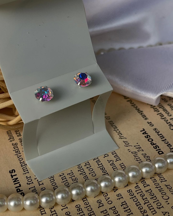 گوشواره تک نگین سوارسکی هفت رنگ نقره عیار 925