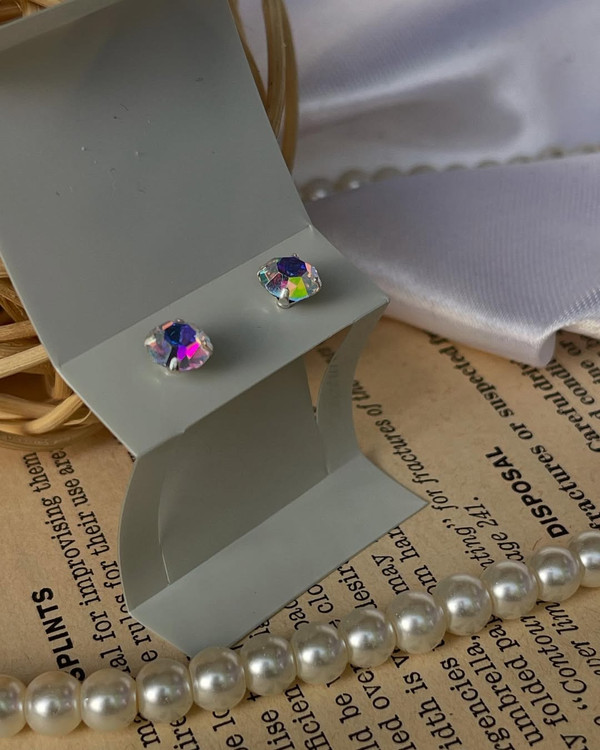 گوشواره تک نگین سوارسکی هفت رنگ نقره عیار 925 رنگ ثابت و ضد حساسیته مناسب استفاده همیشگیه با خیال راحت بپوش برو حمام و استخر بدون تغییر رنگ. ساخت تایلند #بدلیجات_شیک