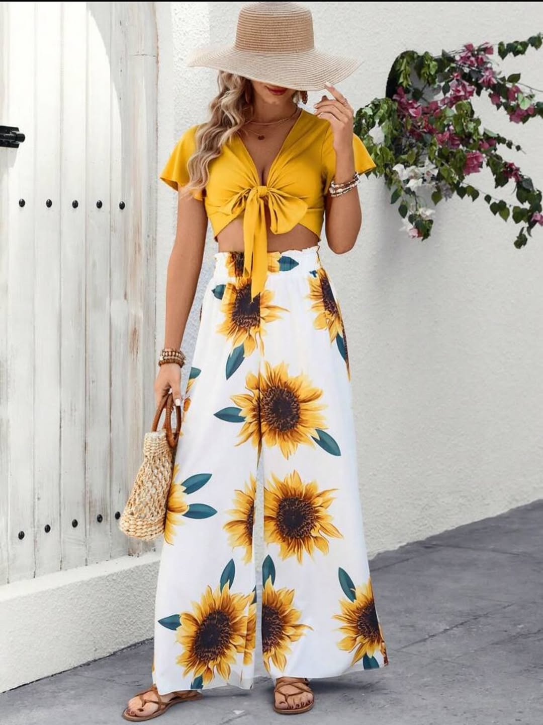 شلوار راحتی گل آفتابگردون برند: shein سایز: ۴۲/۴۴