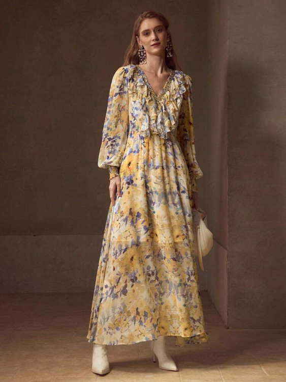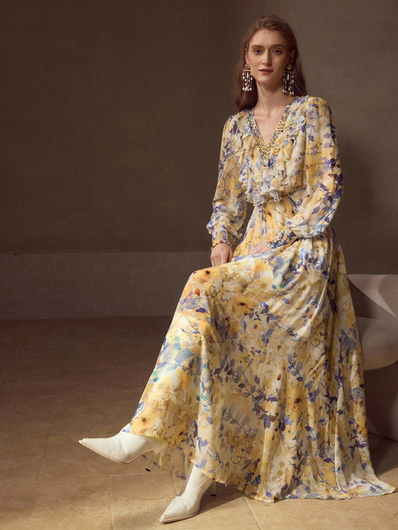 قسمت یقه سنگ دوزی شده هست و سر آستینا کشدوزی