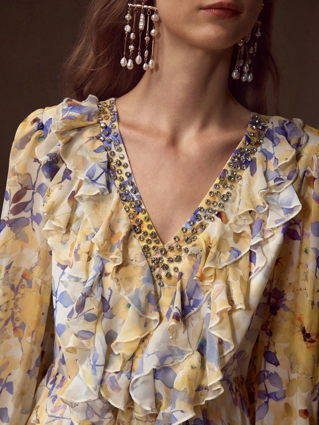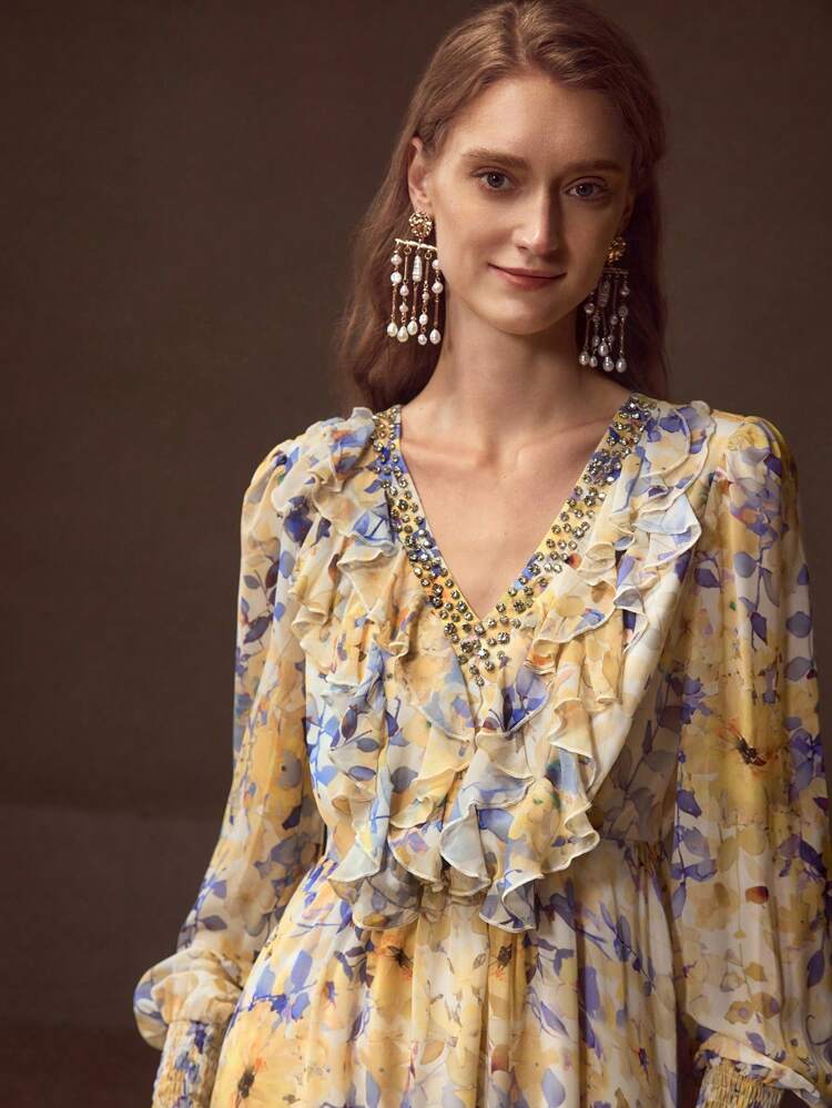قسمت یقه سنگ دوزی شده هست و سر آستینا کشدوزی